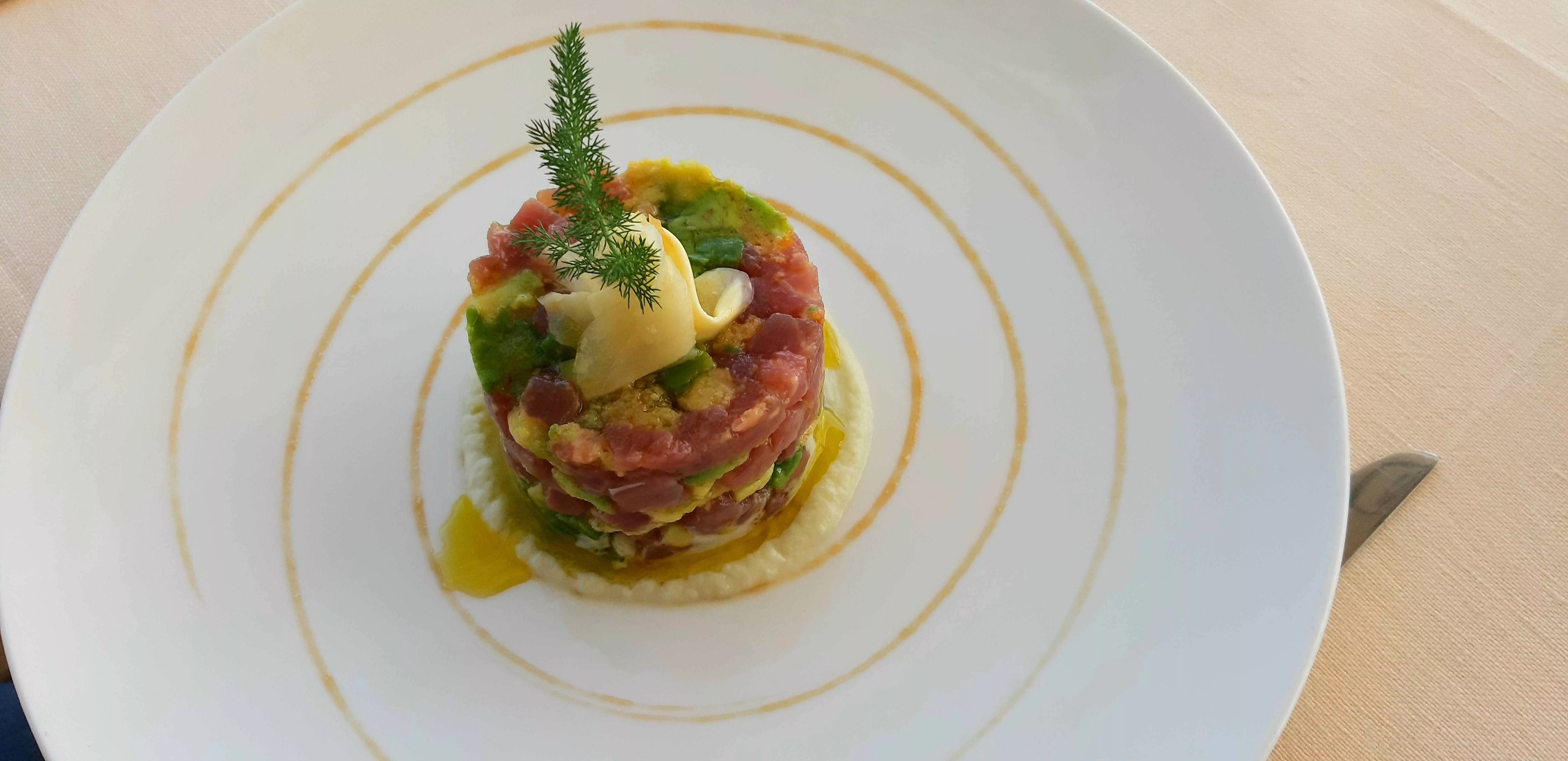 e avocado con crema fredda di finocchi e zenzero (Pesce, soia)☆